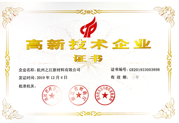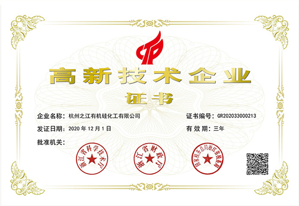- 112020-2023 High tech Enterprise Certificate (Zhijiang Organic Silicon)122019-2022 High tech Enterprise Certificate (New Materials Company)