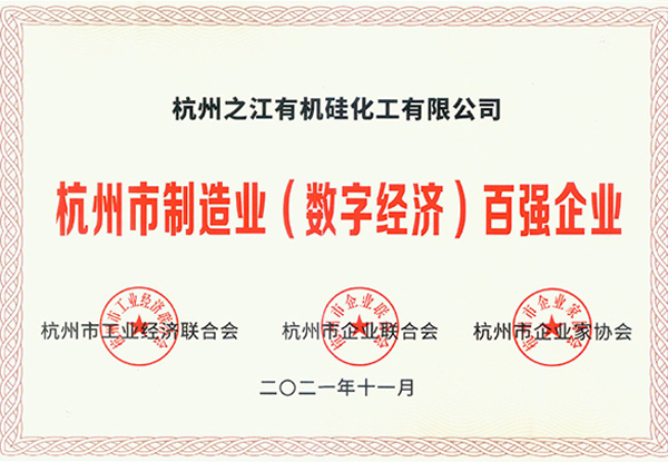 - 252021 Supply Chain Big Data Enterprise Warehousing Certificate (China Real Estate Industry Association)26November 2021 Hangzhou Manufacturing (Digital Economy) Top 100 Enterprises (Zhijiang Organic Silicon)